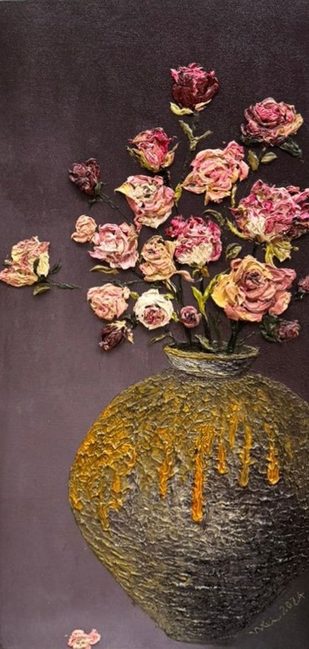 Li Wei grew up in the mountains where she absorbed much of her artistic talent as a visionary artist. She delicates but her extensive three-dimensional palette knife technique is well-known between her art lovers and collectors from all over the world.