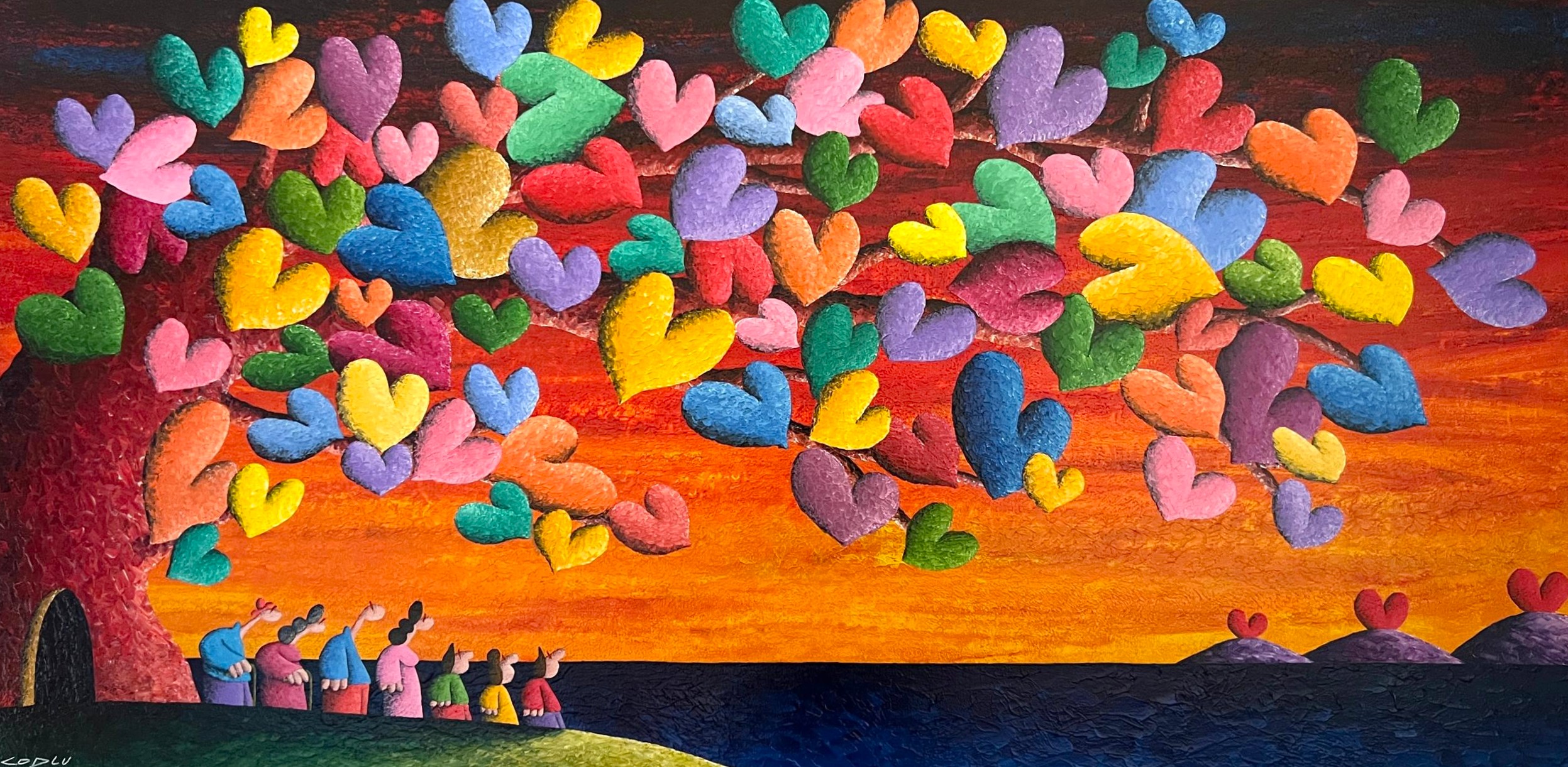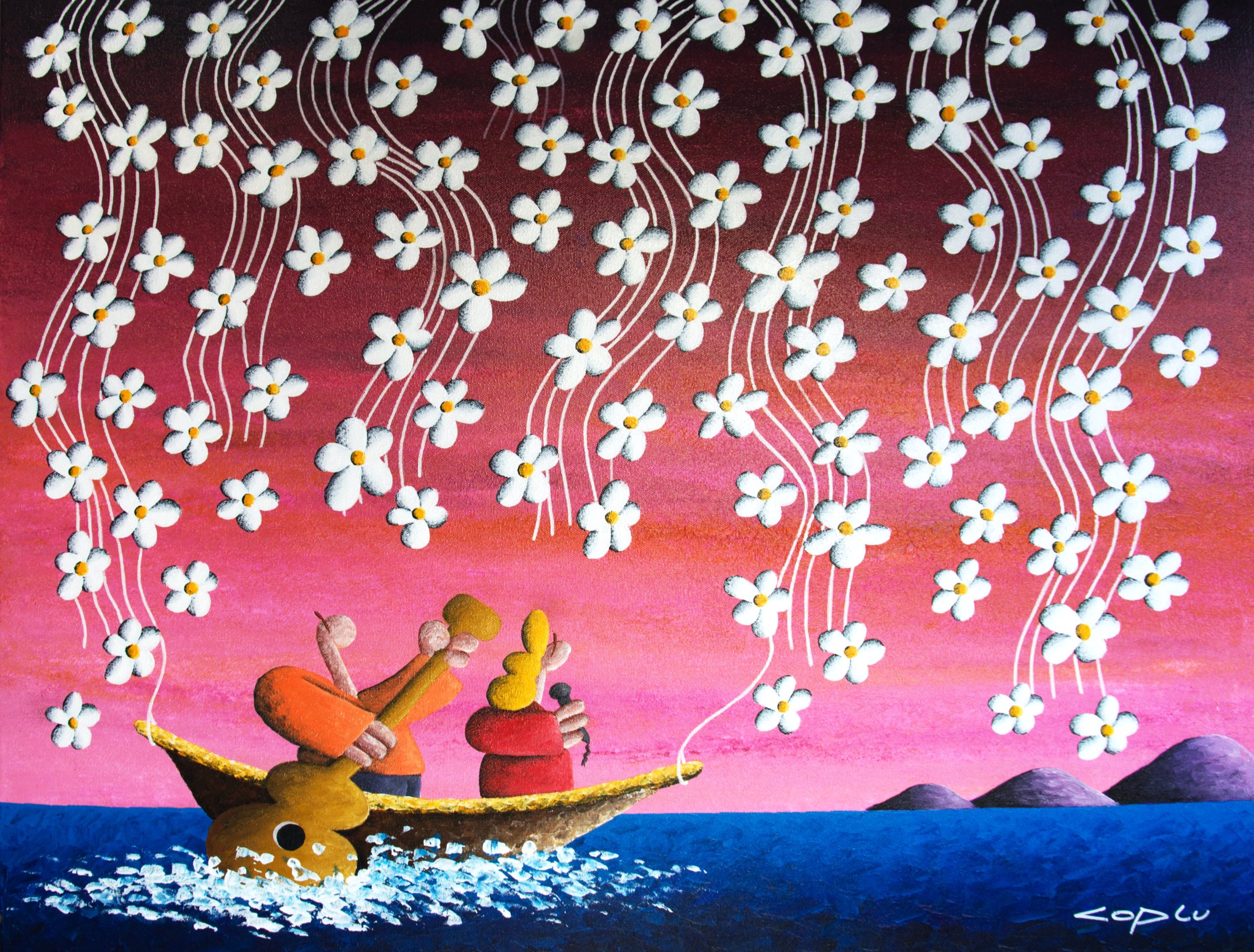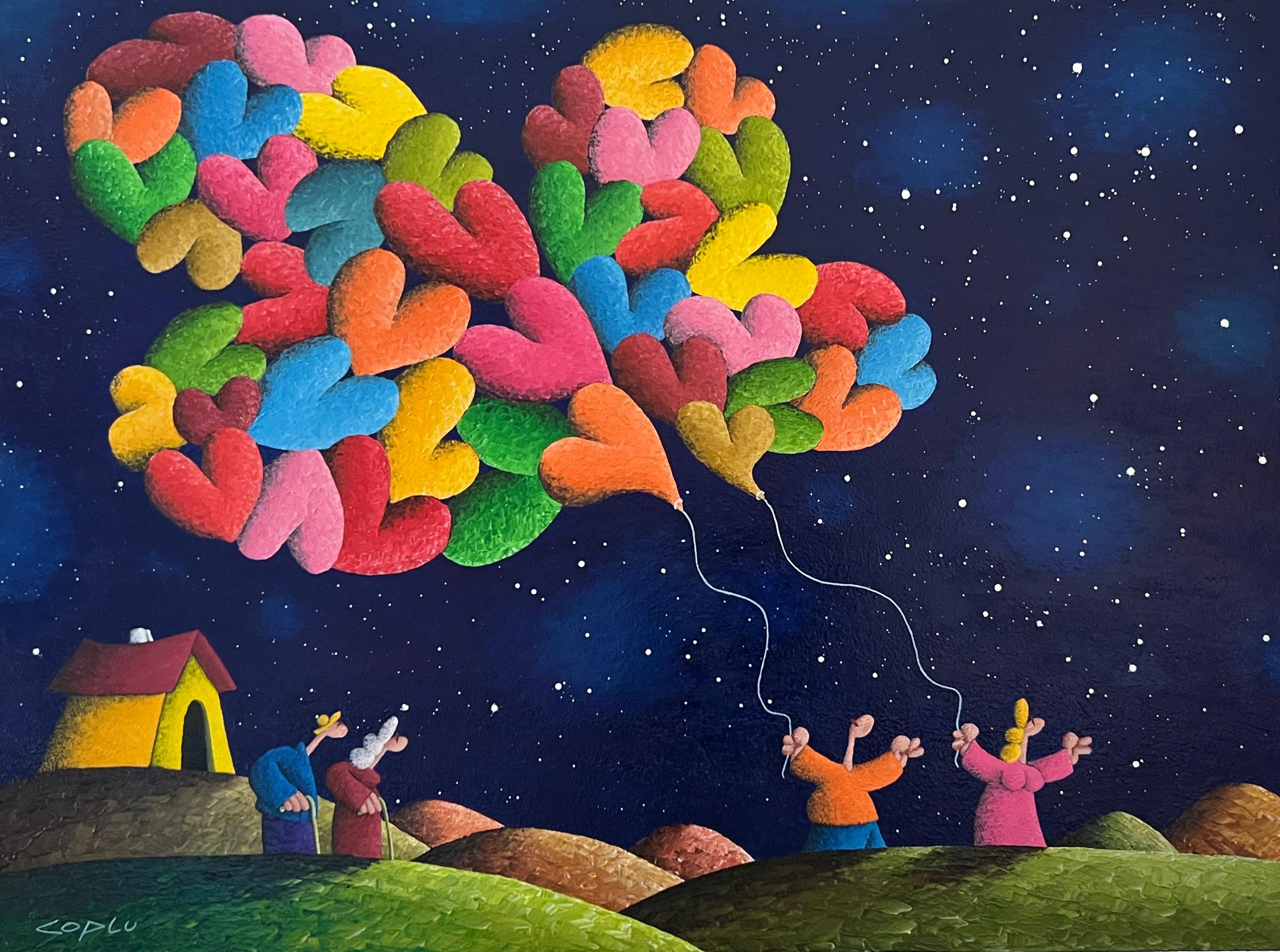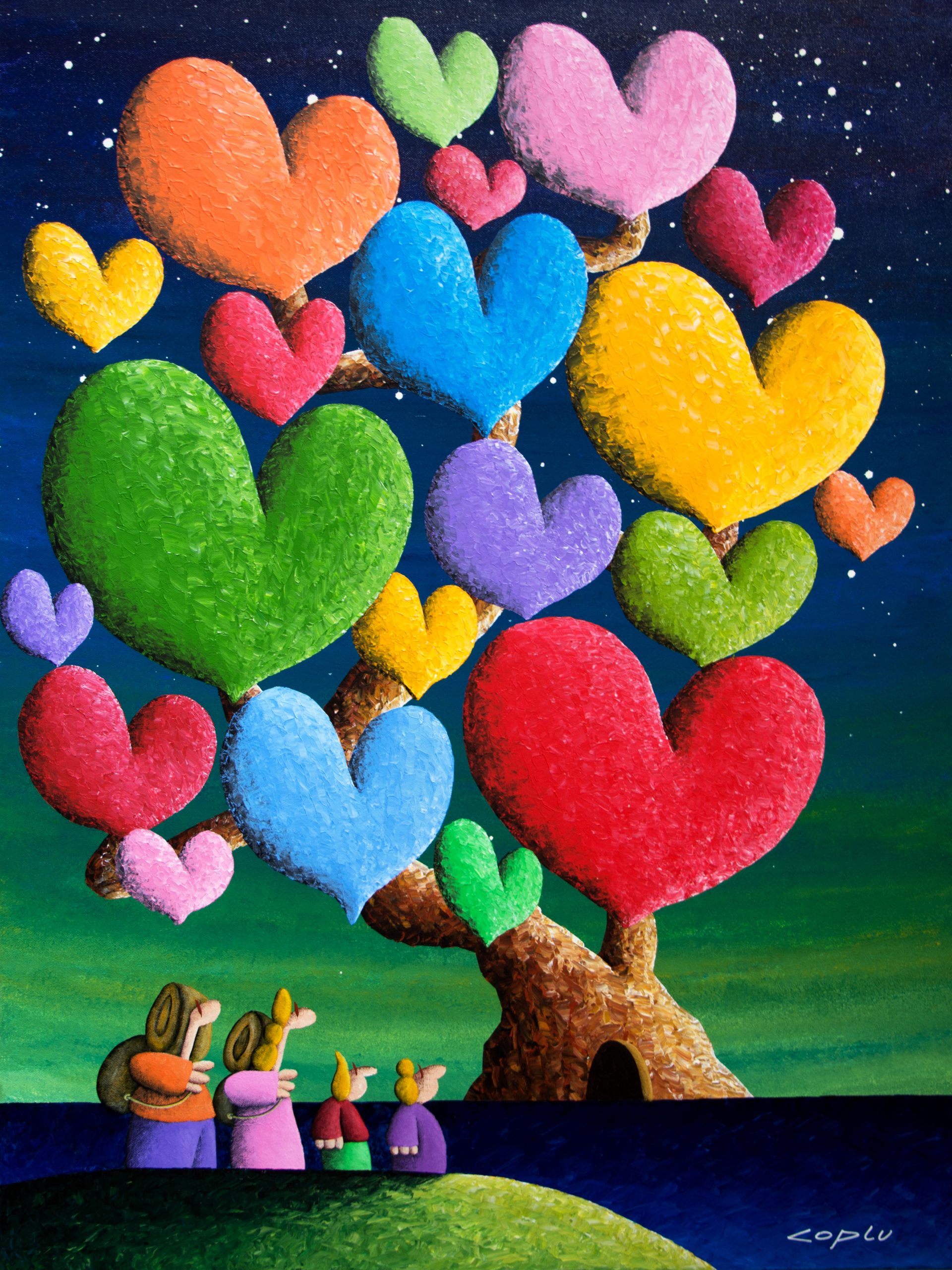 Coplu 擁有樂觀開朗的性格、充滿愛的靈魂於天馬行空的想像力,不難發現這些特質在他的創作中表露無遺。生動的色彩、幽默的題材與豐富的象徵是Coplu創作中缺一不可的元素。透過使用輕盈,強烈,鮮豔的色彩,托盤和筆刷的筆觸,描繪了我們與大自然互動的許多感受。在他的作品中,愛心代表人與人之間的情感、花朵象徵純潔與大自然的蓬勃生機、高飛的氣球承載著自由與夢想、樹木像徵者我們生命的開始和發展的家庭基礎、而船隻則有著展開旅程與表現冒險的精神。