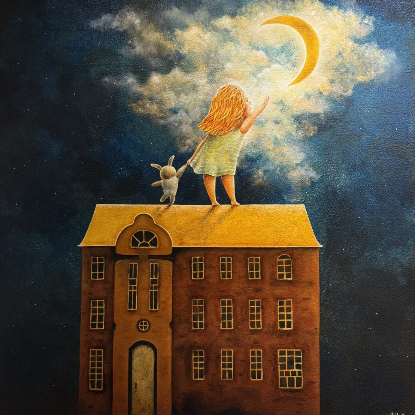 Nick draws inspiration from observing pieces from the artistic world but also by witnessing life and dreams, attempting to translate characteristics of the senses, conscious or unconscious, that any living being can feel into images – such as the feelings of surprise or awe, the hallucinatory aspect of a dream or even the absurdity of life-. The artist composes stories, either by reinterpreting paintings he admires, or by creating his own narratives, populated with quixotic characters, always oscillating between dream and reality